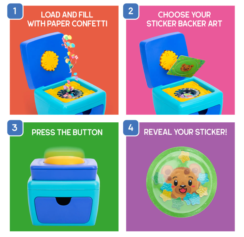 - Endless creativity: The sticker machine is compatible with sticker shells and backers from your local craft store, so the creative fun never has to end; kids can design, draw, and color their own illustrations, sparking more creativity!