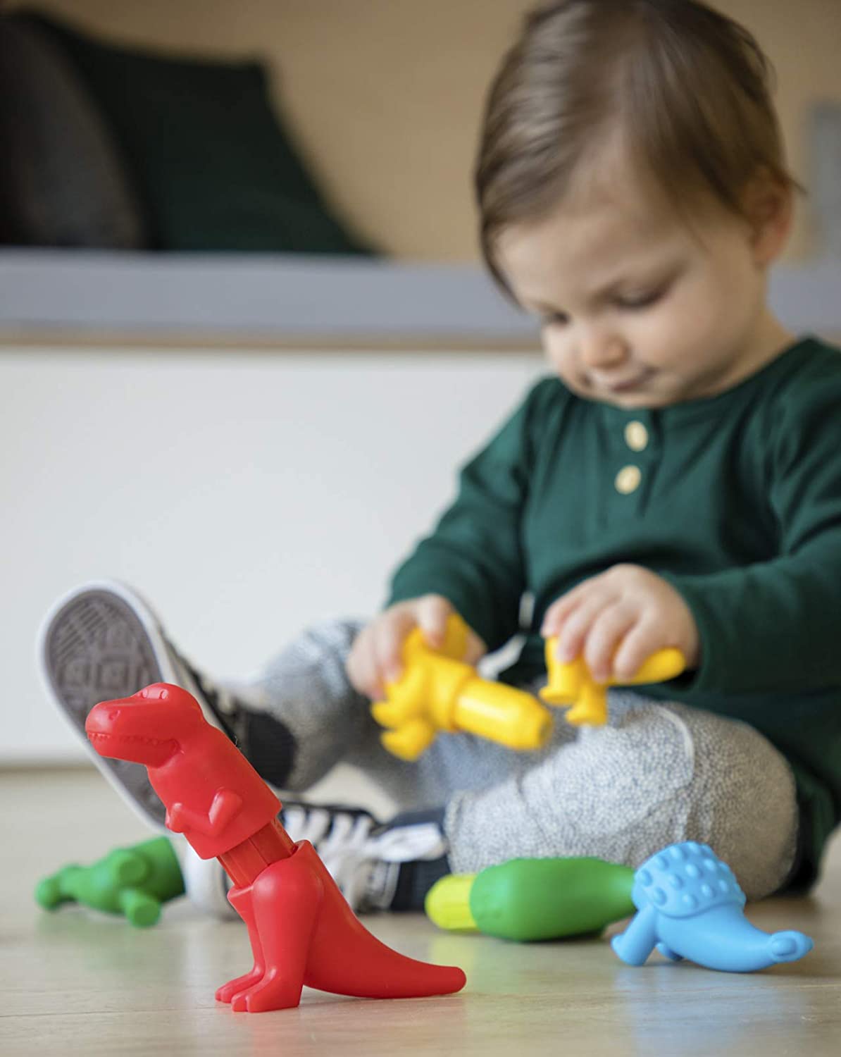 Little hands easily click together the fronts and backs of friendly magnetic dinosaurs. Mix, match and create adventures! Ages 12 months+